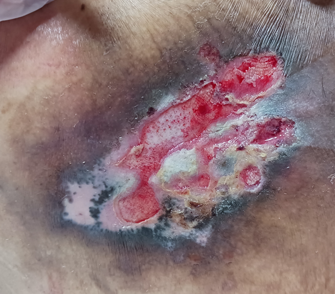 を特定行為看護師が担い、多職種連携の中で安全かつ計画的な創傷管理を実施した。